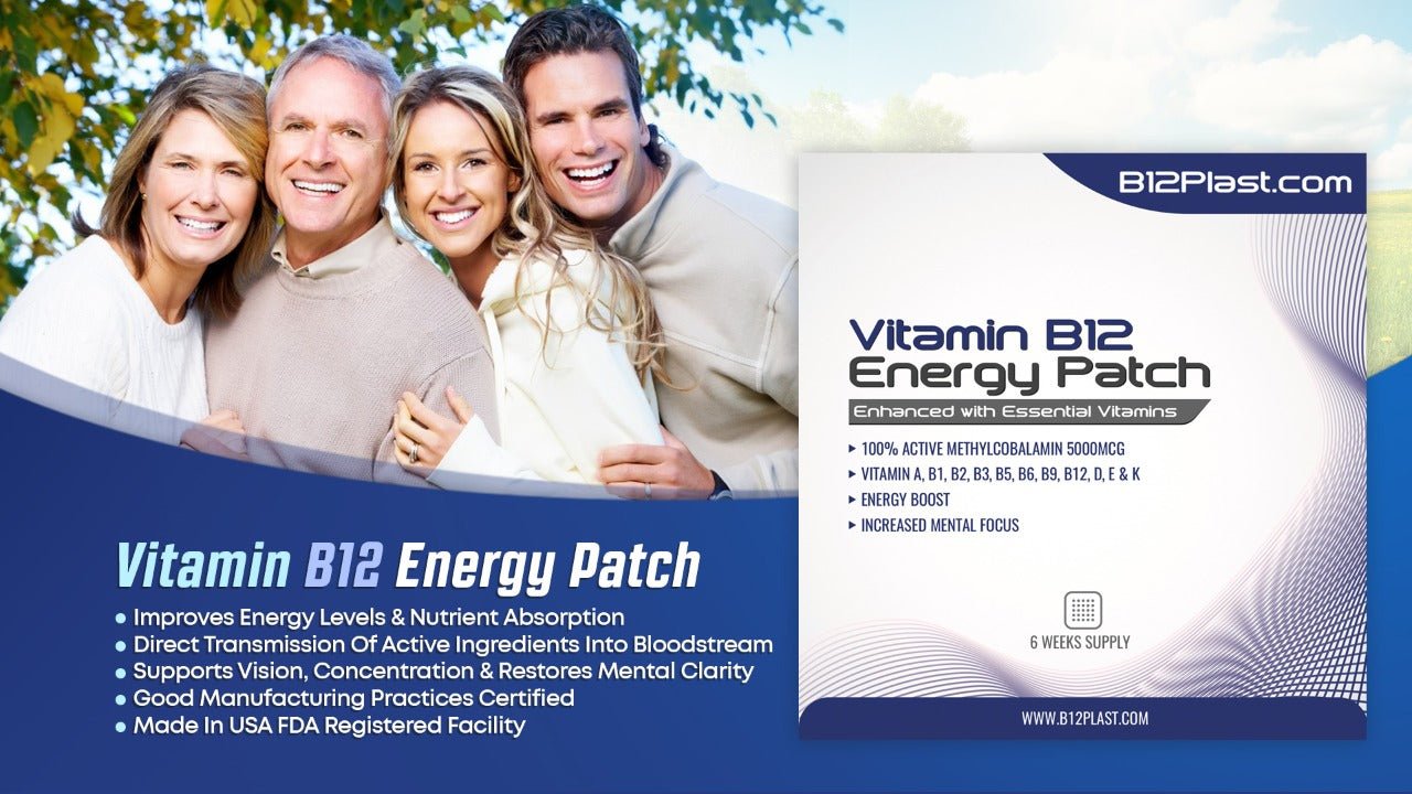 B12Plast Transdermal Vitamin B12 Patch 5000mcg plus 10 Essential Vitamins
